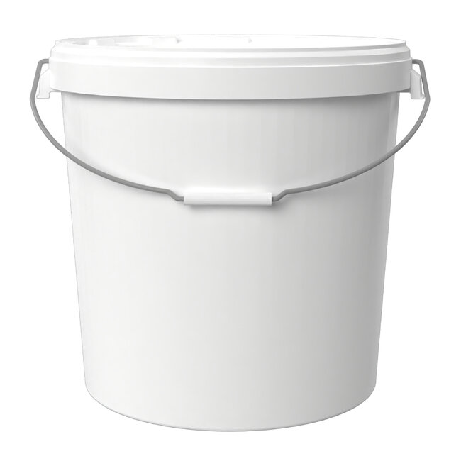 Round, white, bucket including lid with a capacity of 31,5 liter. The bucket is completely liquid-tight and equipped with a handle and first user warranty. Suitable for the food and non-food sector. Not suitable for hazardous (liquid) substances. Read more.