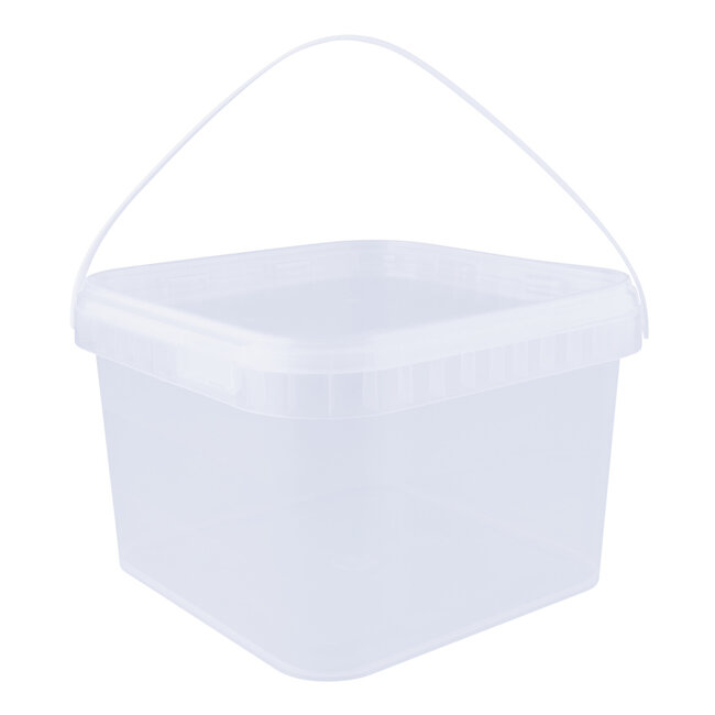 Vierkante, transparante, emmer inclusief deksel met een inhoud van 3,5 liter. De emmer is volledig vloeistofdicht en voorzien van een hengsel en eerste gebruikersgarantie. Geschikt voor levensmiddelen, niet geschikt voor gevaarlijke (vloei)stoffen. Lees meer.